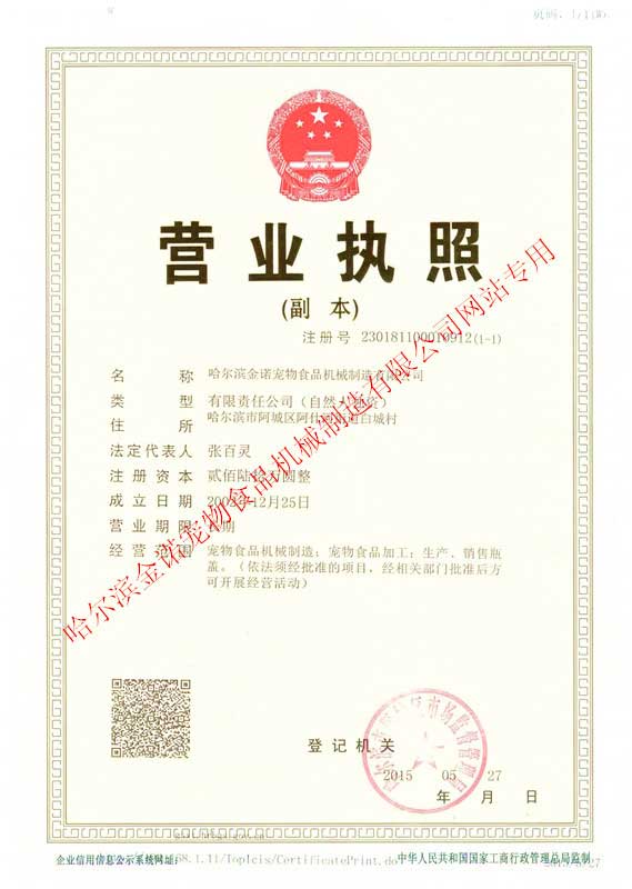 哈爾濱金諾寵物食品機(jī)械制造有限公司